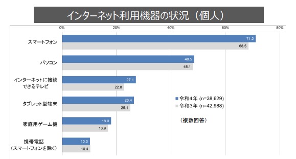 インターネットの利用は約70%がスマホからの利用と言われています。